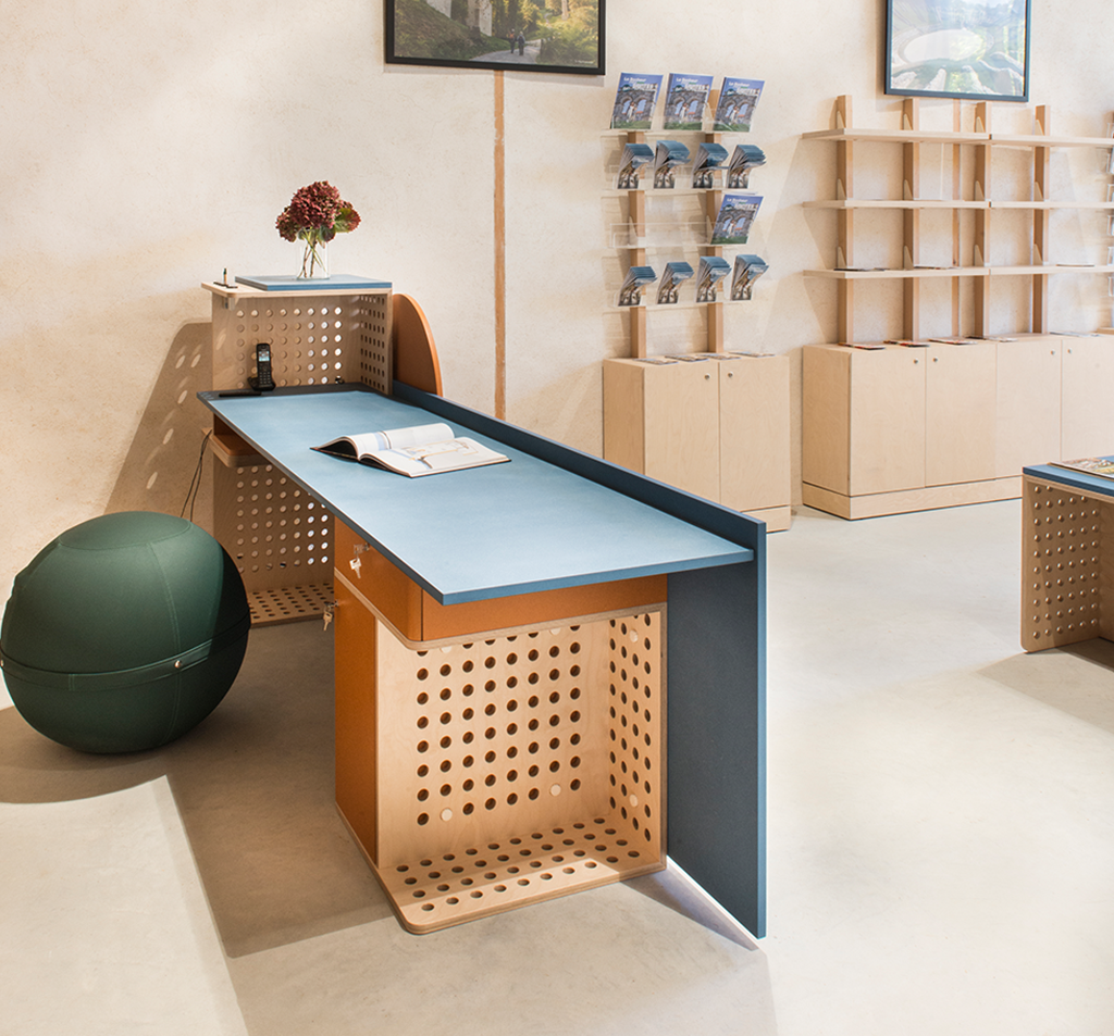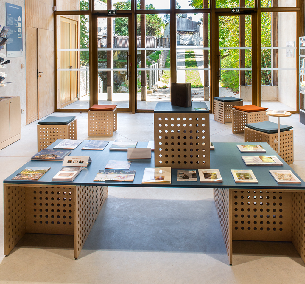 Nous avons accompagné la Maison des Aqueducs dans la transformation complète de son espace d’accueil et de boutique. Un lieu pensé pour recevoir le public et déjà conçu pour évoluer, dans les prochaines années, en salle pédagogique modulable grâce à un mobilier intelligent et sans outil.